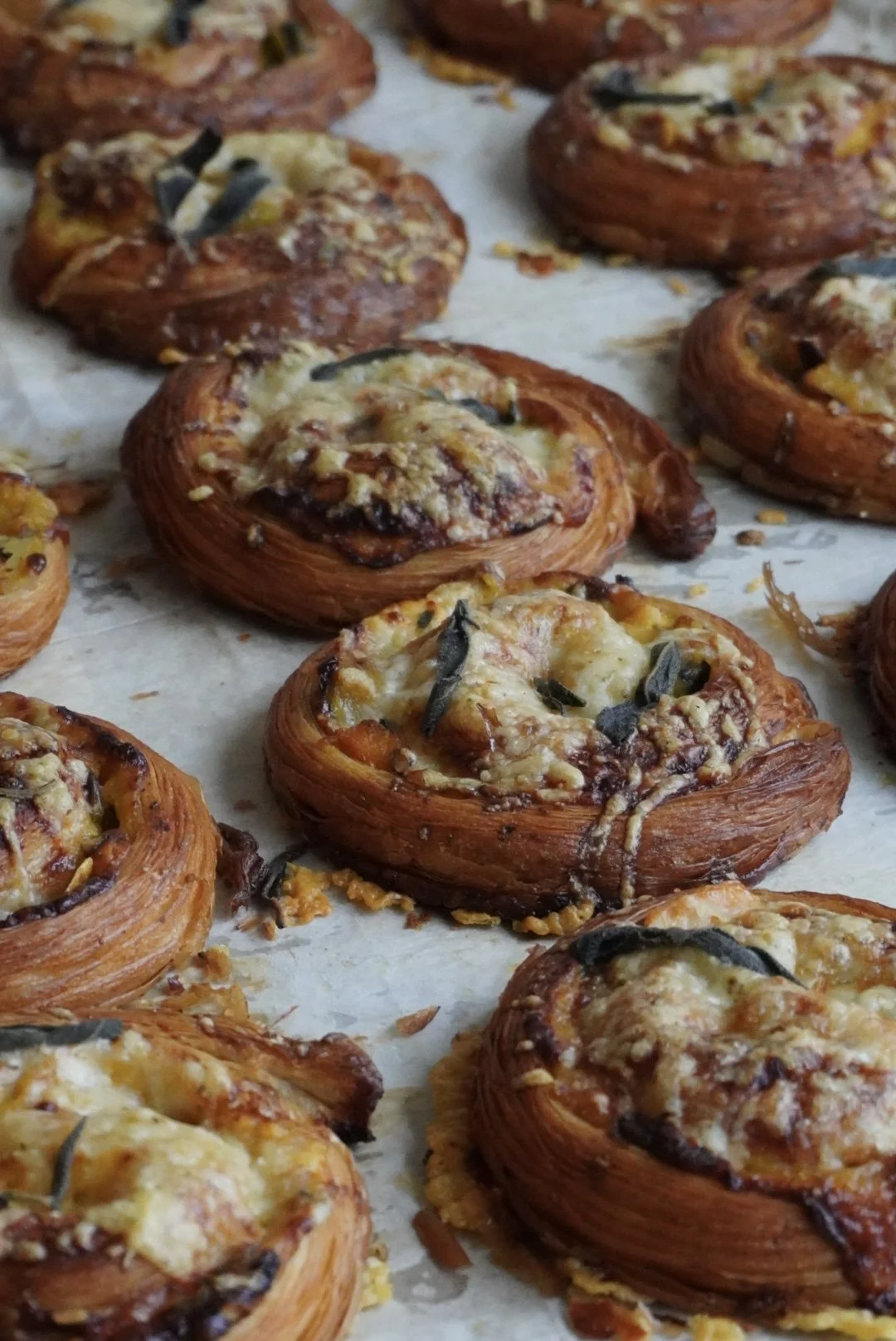 Made with organic white flour from Shipton, stoneground Ølands from Bruern Farms, stoneground Bruern blend flour and cultured butter from Estate Dairy. Encasing roasted mushrooms from Shrub in Sussex, mushroom béchamel and alpine meadow cheese from Jumi Cheese in Crouch End. Finished with a roasted garlic and marjoram glaze.